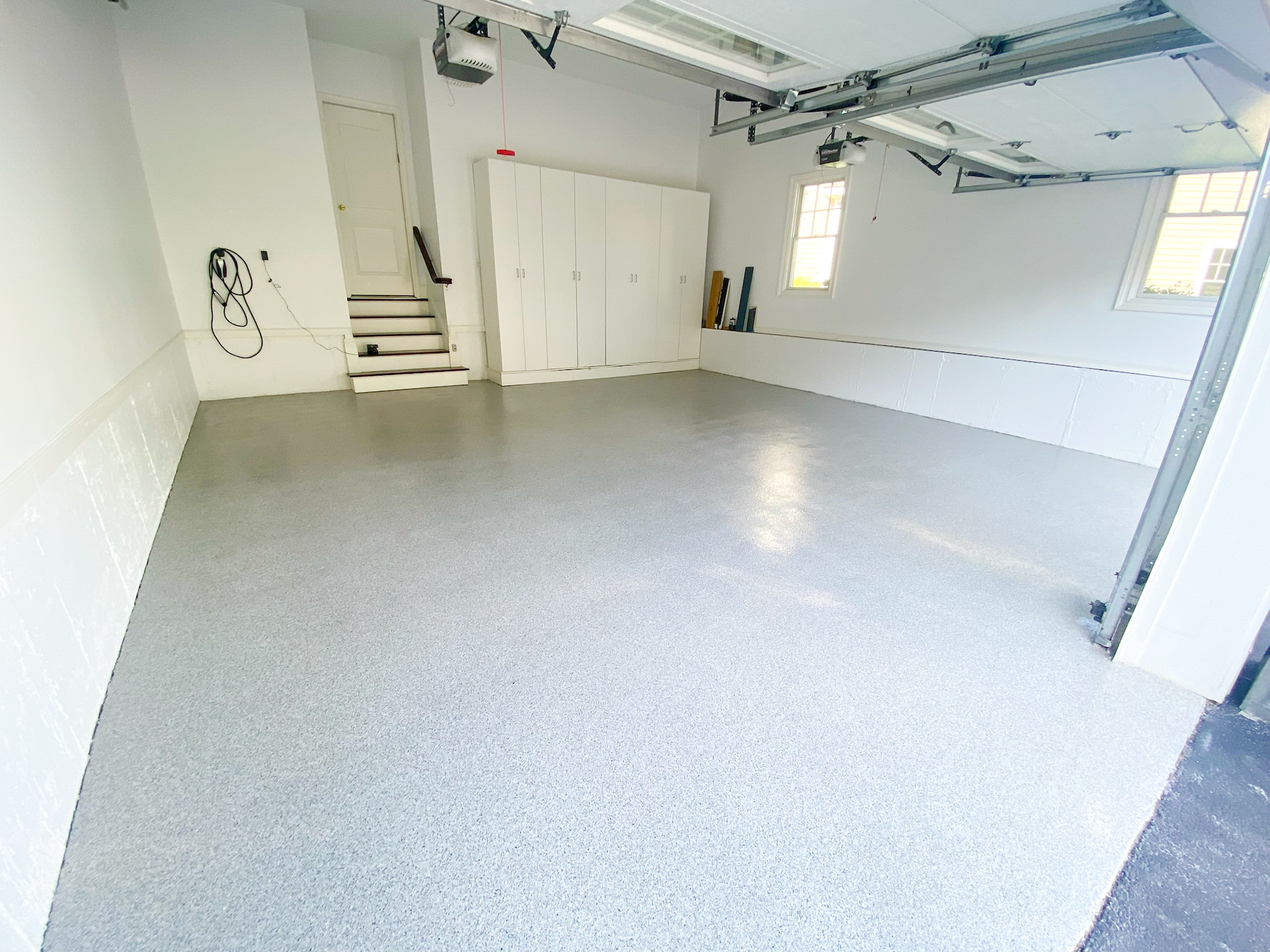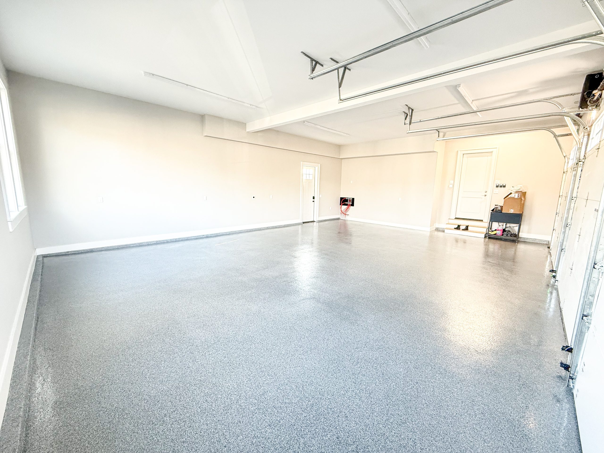 Next up is the decorative portion! Clients can choose and customize their flake colors, size, and design. The system is completed with a Polyaspartic UV-resistant top coat.