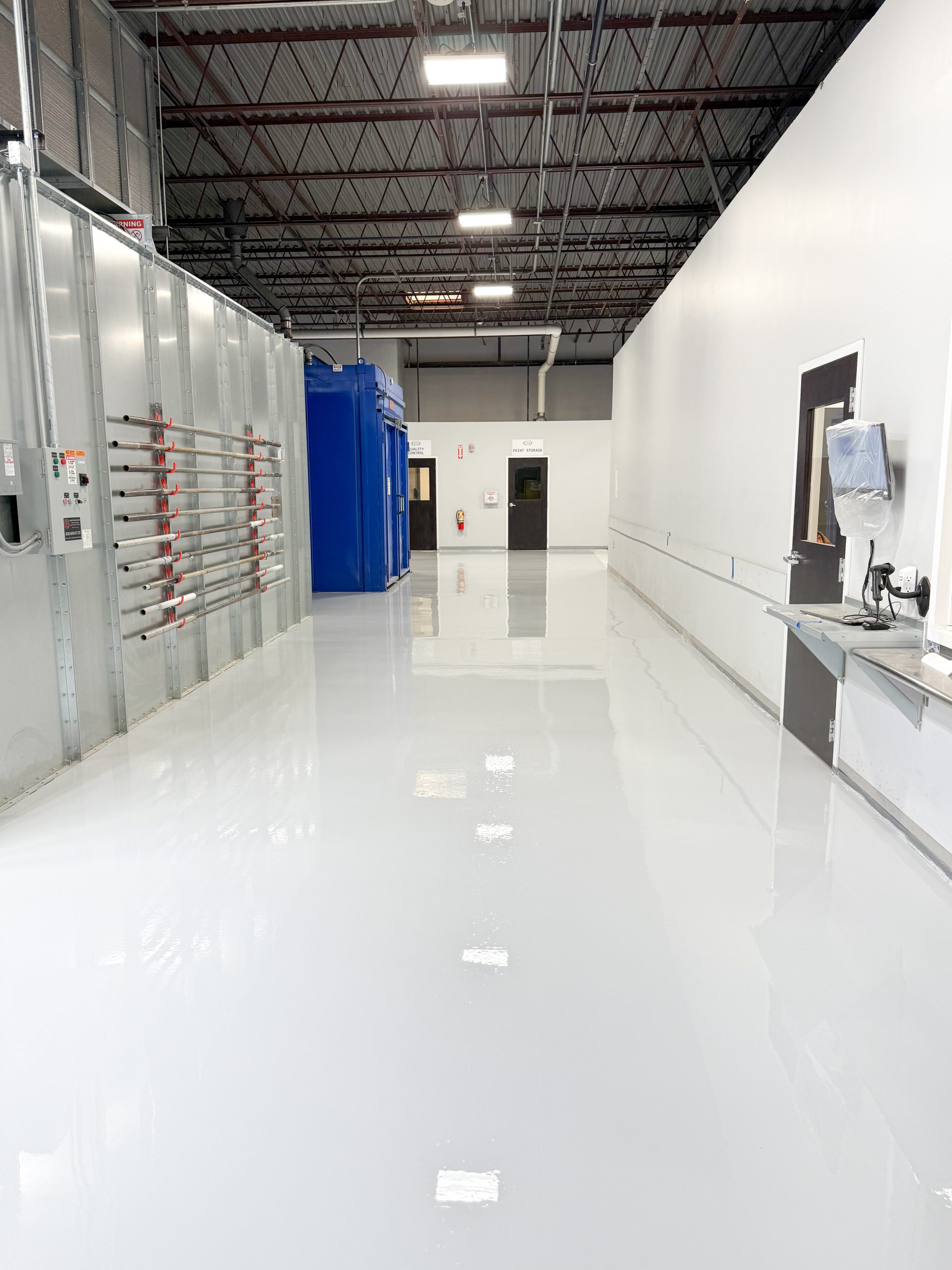Our Epoxy Flooring Systems all begin with proper surface preparation, including a full grind of the concrete surface, followed by the application of a 100% solids moisture vapor barrier hybrid epoxy.
