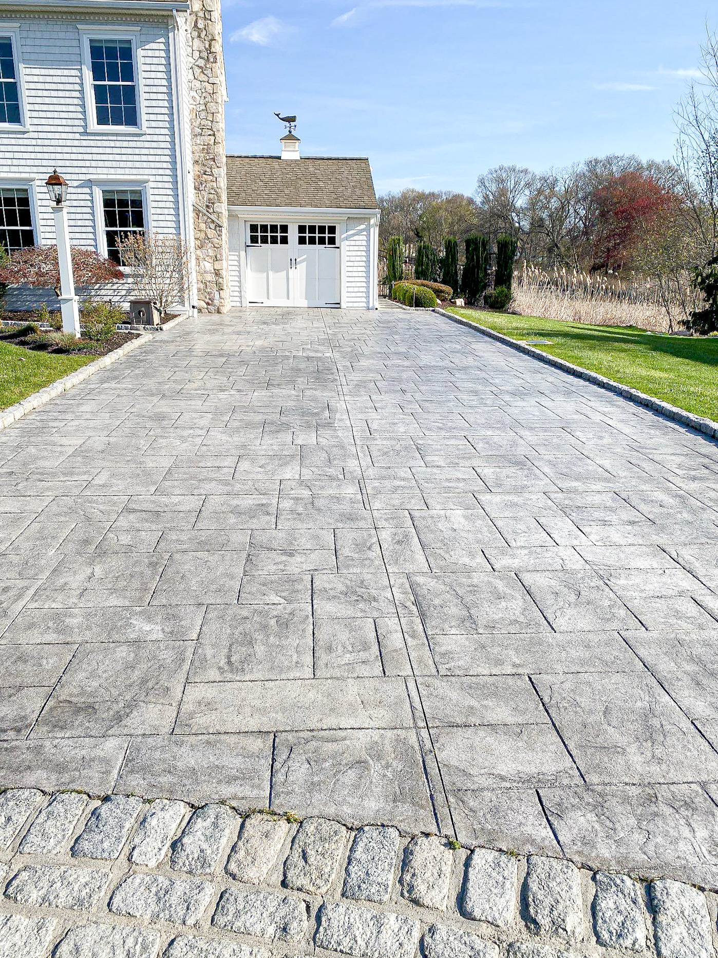 Traditional pavers and stone driveways look great—until they start shifting, settling, and sprouting weeds. Stamped concrete offers the same high-end look without the maintenance headaches. From herringbone brick to cobblestone textures, a stamped driveway elevates your home’s first impression while staying strong under heavy use.